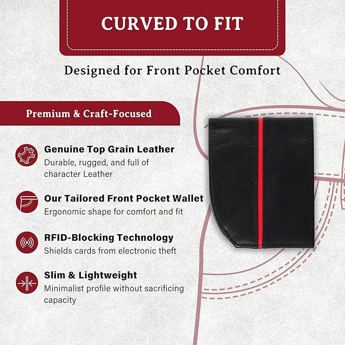 - ๐๐ซ๐๐ฆ๐ข๐ฎ๐ฆ ๐๐ซ๐๐๐ญ๐ฌ๐ฆ๐๐ง๐ฌ๐ก๐ข๐ฉ: Crafted from top-grain leather, these tailored front pocket wallets feature a curved shape that matches the contour of the front pocket, providing easy access, reducing back pain, and offering the functionality of a thin bifold wallet
