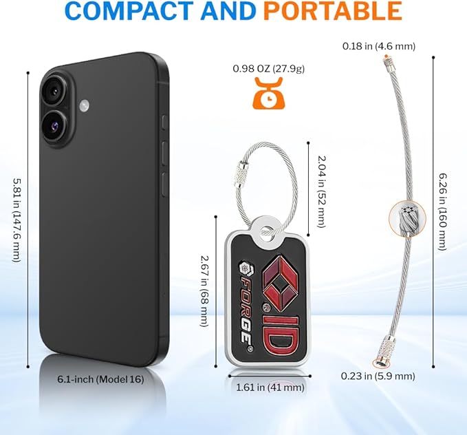 - Zinc Alloy and Thickened Steel Wire – Built to Last Forge smart Lost & Found Tags are crafted from solid zinc alloy, each Forge tag is paired with a thick stainless steel wire loop—designed to withstand years of pulling, tossing, and handling without breaking or fraying. We also apply a special protective coating over the QR code to guard it against scratches, fading, and water. Your QR code is key—we made sure it lasts.