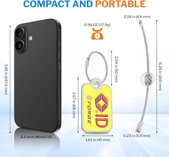 - No App, No Subscription, No Ongoing Cost Set it up once—it works forever. No app to download, no batteries to replace, and no subscription fees—ever. Just scan the QR code, enter your contact info, and you’re ready to go. Your forge lost and found tag works without requiring any sensitive personal information. Our website will never ask for other private data to complete registration.