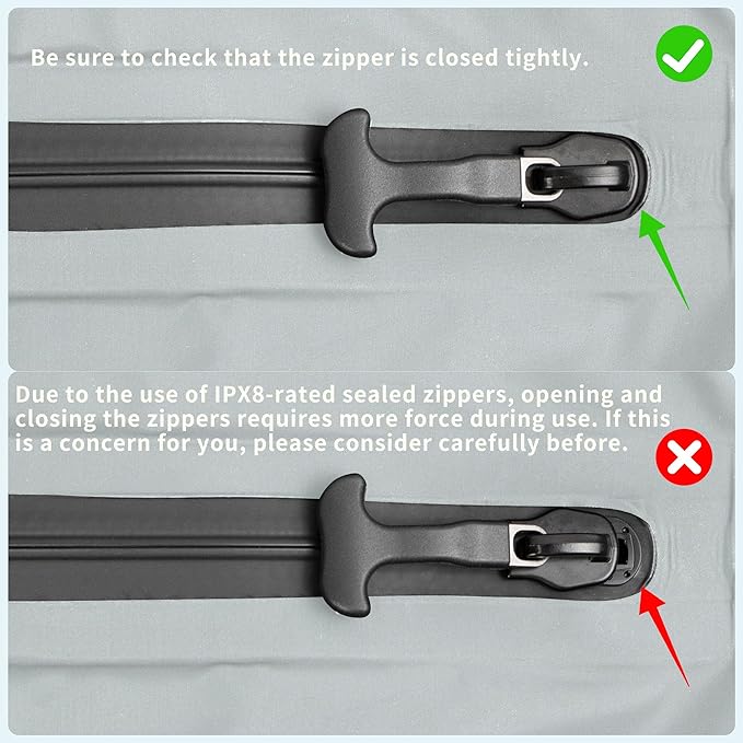 - 【Airtight Zipper】Our 3 pieces travel compression bags are equipped with upgraded IPX8 airtight zippers, which can be reused over 1,000 times. Its sealing performance is similar to that of a zipper on a diving suit, effectively preventing gas and liquid from seeping in to keep clothes dry and clean. When using, please ensure the zipper is fully closed to achieve the best sealing effect (Note:toiletry bag is just waterproof zipper, not IPX8 zippers)