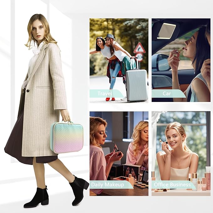 - 【Adjustable Dividers & Convenient Size】Large-capacity travel makeup case(10.4"x 9.1"x 4.6") hard partitions and lined surface can be well fixed and protect the cosmetics inside. 6 detachable EVA sponge dividers,you DIY the layout to place nail polish, brushes and other cosmetics in your makeup case as needed.