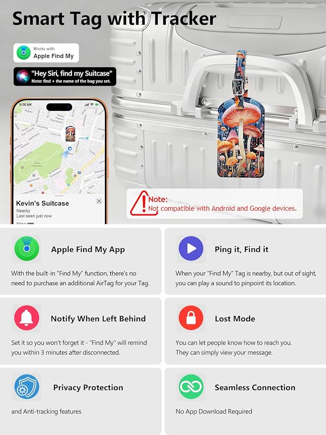 - 🎄🎁💝Find My Location Tracking: Built-in Find My feature works seamlessly with Apple devices to track your luggage in real-time. Offering real-time tracking, proximity alerts, left-behind remind and global location sharing—no additional app required. Perfect for iPhone, iPad, iWatch and Mac users. Note: Android devices are not supported.