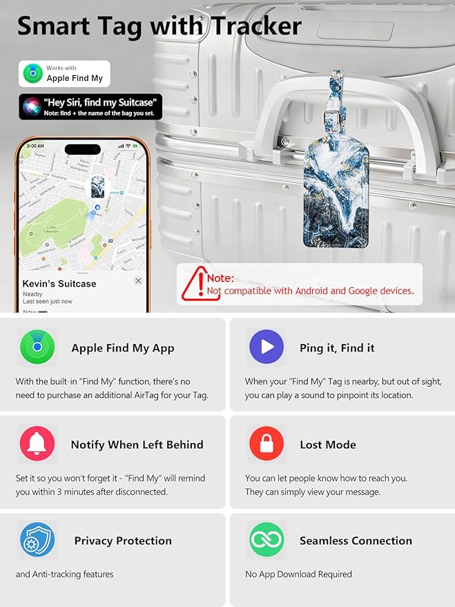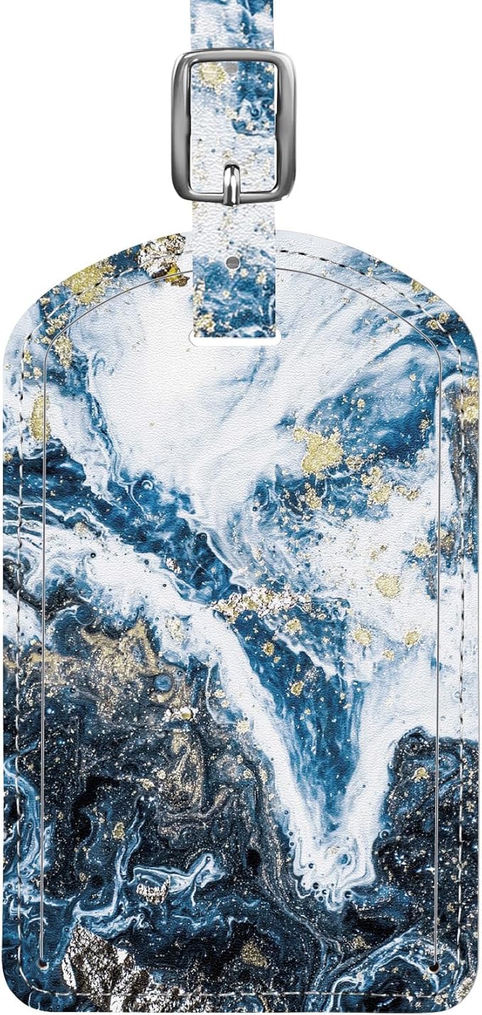 Luggage Tags Built-in Anti-Loss Tracker, Luxury Leather Luggage Tags for Suitcase, Travel Bags, Backpacks, Travel Organizer for Lost Baggage Prevention (Marble Texture)