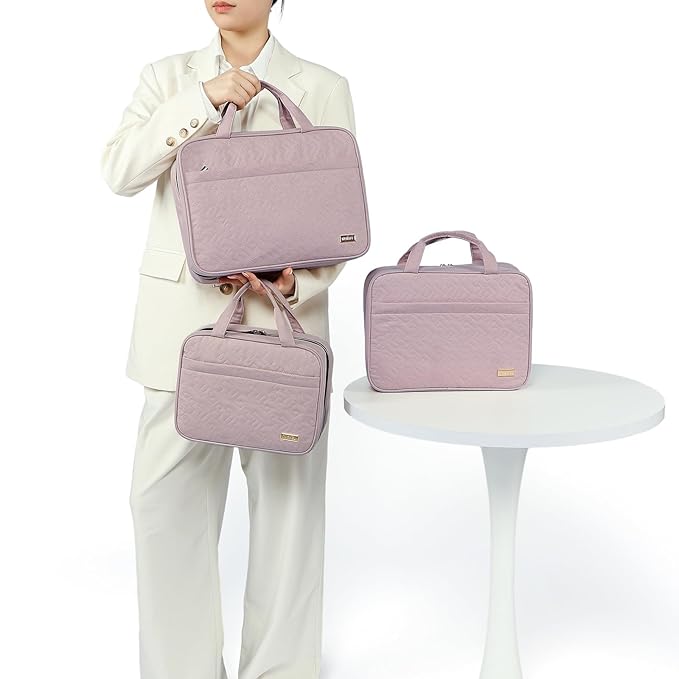 NISHEL Travel Toiletry Bag for women, Portable Hanging Organizer for Family-Sized Shampoo, Conditioner, Brushes Set, Makeup Accessories, Extra Large Size, Peach Pink