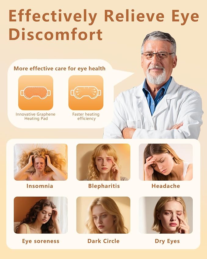 - 【Heating Benefits for Soothing Eye】 The graphene heating layer evenly distributes heat to the eyelids, providing relief from dry eyes, styes, and sinus pain. Our heated eye mask for dry eyes offers three temperature settings,each mode auto-off in 30 mins for safety. By warming your eyelids, it helps provide a deep, penetrating warm compress therapy to significantly reduce inflammation, eye strain, and dark circles