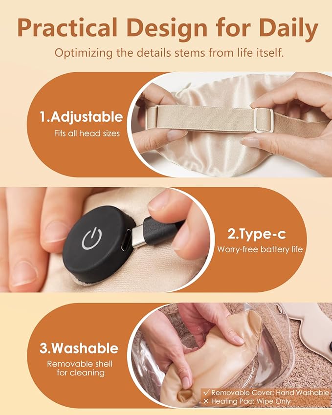 - 【Cordless Freedom】 Ditch messy cords and microwaves! Enjoy the constant, comfortable warmth of our wireless heated eye mask wherever you are. It fits easily in its pouch and works with any power bank for all-day comfort. The eye heating pad is hand-washable after each use for a clean and fresh experience. (Note: heating core is not washable.)