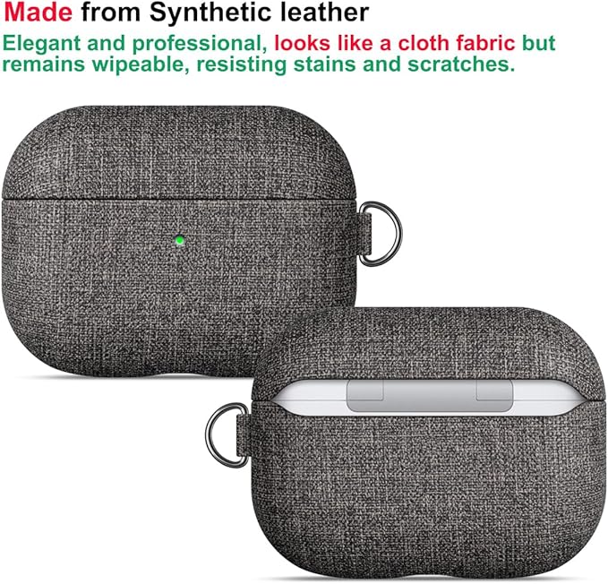 - 360-Degree Protection: All-round protection design philosophy, Skin-friendly canvas pattern PU leather cover protects your AirPods Pro against scratches, dirt and daily wear and tear. Ultra-robust and designed to last