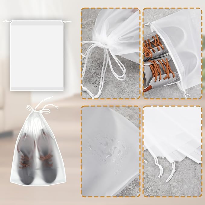 - Durable And Waterproof Material: large clear shoe bags for storage made from high-quality, odor-free pp plastic, these bags are waterproof, dustproof, and reusable. the sturdy material resists tearing and moisture, ensuring reliable protection for your belongings in various conditions.