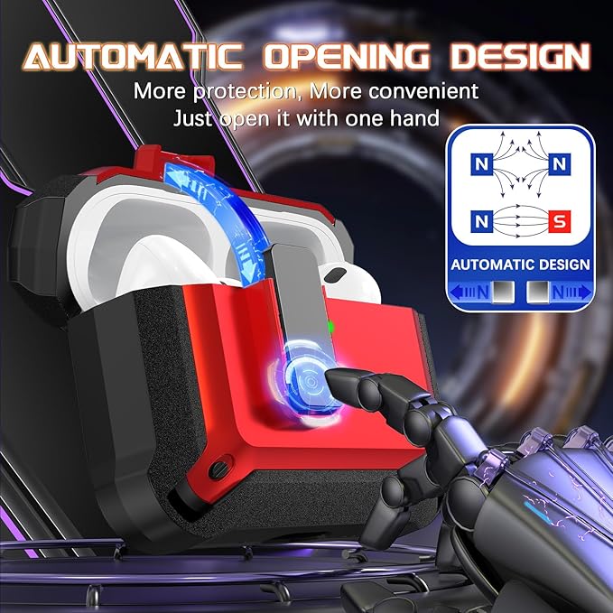 - 【Upgraded Lock & Lid Protection】The R-fun case features an upgraded lock and auto anti-misopening lid—optimized for the AirPods Pro 3rd Gen charging case shape. Its full-wrapped anti-drop design buffers impact from falls/collisions, while the auto-closing function prevents accidental popping open (even when dropped from height), blocking dust/scratches for all-round protection.
