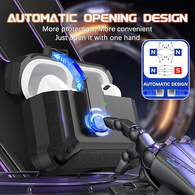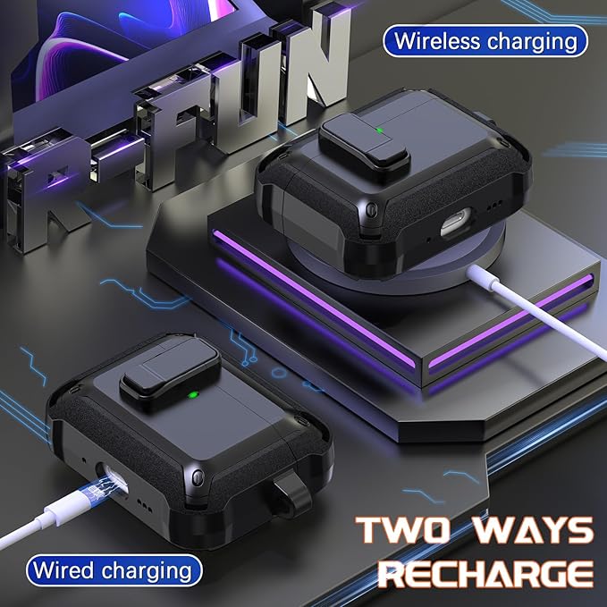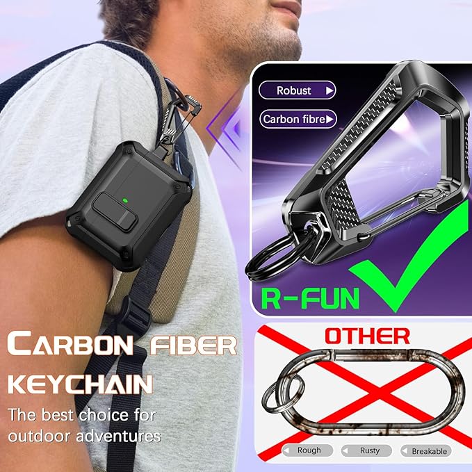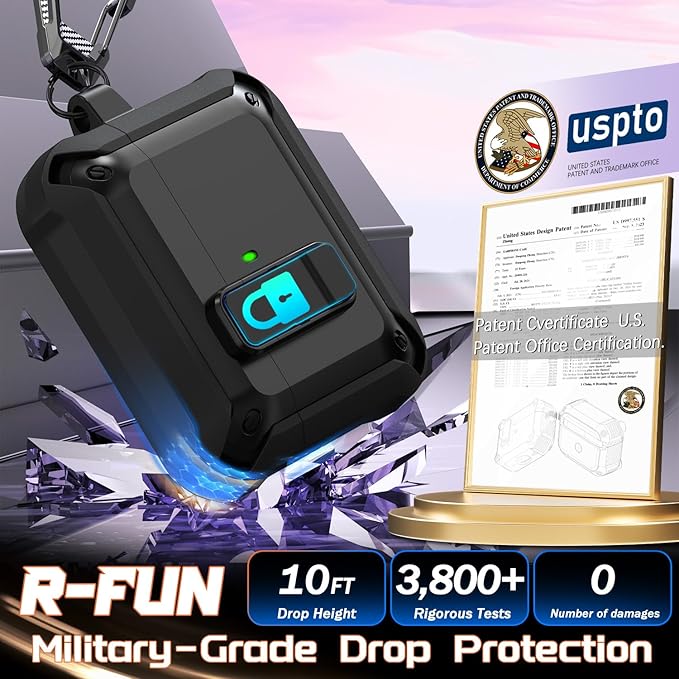- 【Upgraded Lock & Lid Protection】The R-fun case features an upgraded lock and auto anti-misopening lid—optimized for the AirPods Pro 3rd Gen charging case shape. Its full-wrapped anti-drop design buffers impact from falls/collisions, while the auto-closing function prevents accidental popping open (even when dropped from height), blocking dust/scratches for all-round protection.