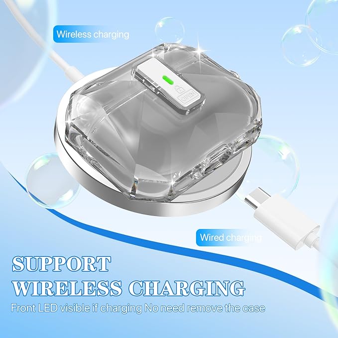 - 【Transparent Design with LED Indicator】:The crystal-clear TPU material showcases the original beauty of your AirPods while allowing you to monitor the charging status effortlessly. The front LED indicator no need to remove the case! Perfect for quick checks at home, in the office, or on the go.