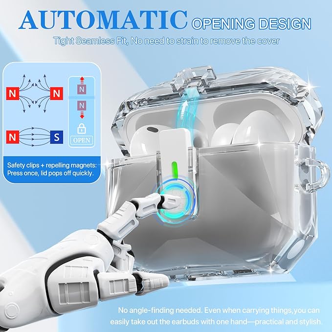 - 【Lock Design】: Unlike traditional transparent cases, this one features a unique lock design. It not only showcases the original beauty of AirPods but also significantly enhances safety, providing better protection for your AirPods.