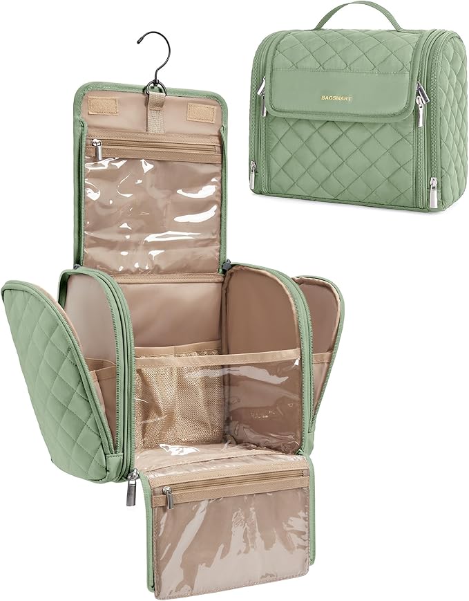 BAGSMART Toiletry Bag for Women, Travel Toiletry Bag Makeup Cosmetic Bag with Hanging Hook, Water-resistant for Toiletries Accessories Brushes Sponge