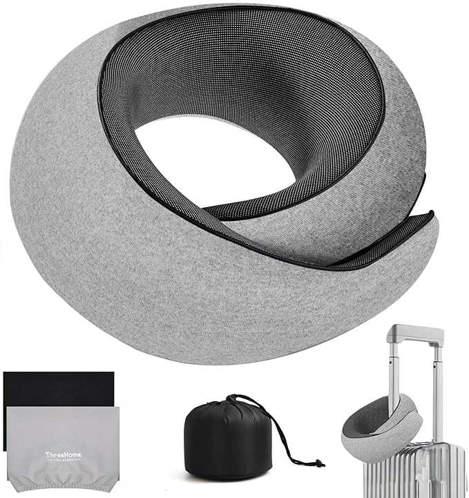 - 【Full 360° Neck and Chin Support】 Designed with ergonomic pillow tech, this neck pillow offers balanced support, cradling your head naturally. A practical neck pillow airplane and long flight must-haves, it’s a key travel essential to reduce neck fatigue on long flights