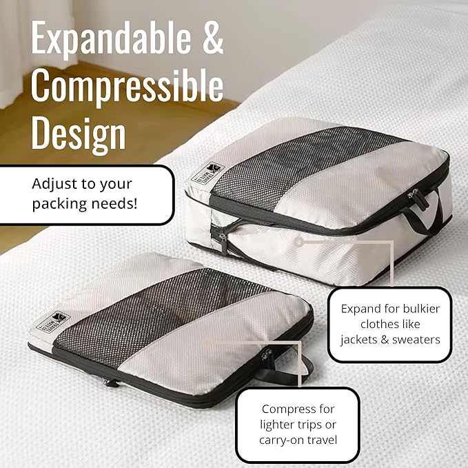 - Minimalist Style That Fits Any Luggage - With a neutral light grey tone with sleek black accents, each packing cube matches the backpack or suitcase of modern, design-conscious travelers.