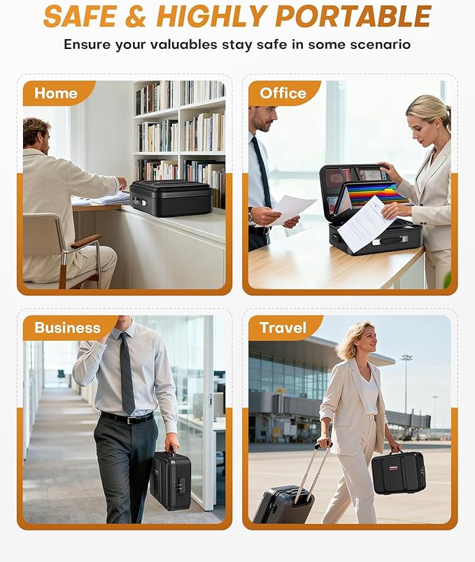 - 【Hard-Shell Box Design】As a reliable fire box safe for documents, it features a thick hard shell that resists daily wear, drops, and impacts. Unlike flimsy soft cases, this hard shell maintains its shape long-term—preventing papers from creasing or being crushed
