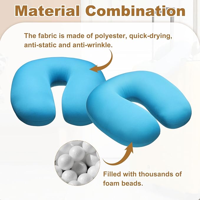 - Size - Length of U-shaped pillow: 11inch / 28cm; Width: 9.8inch / 25cm; Height: 3.5inch / 9cm. Package includes: 2pcs pcs Light Blue U-shaped pillow.