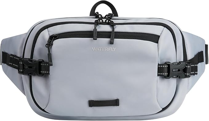 WATERFLY 3L Large Fanny Pack, 180° Opening Hip Pouch with Multi-Pockets, Anti-Theft RFID Blocking Waist Bag for Women Men Traveling Hiking Daily Use-Grey