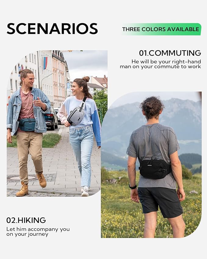 - Your Go-Anywhere Pack: Whether you’re on a day-trip, trekking, cycling, shopping or city walking, it can be used as a casual waist pack, anti-theft hip pouch, and travel cross-body bag