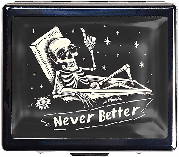 - The pill case cover has a mirror on the inside cover. The size of the box is approximately 3 inches by 2 1/2 inches by 1 inch deep.