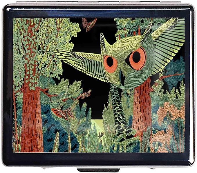 7 Days Chromed Shiny Silver Pill Organizer with Mirror Inside Has 8 Separate Compartments Rectangle,Versatile Storage for Medication - Ideal Travel Accessory (Green owl)