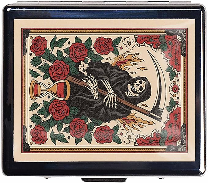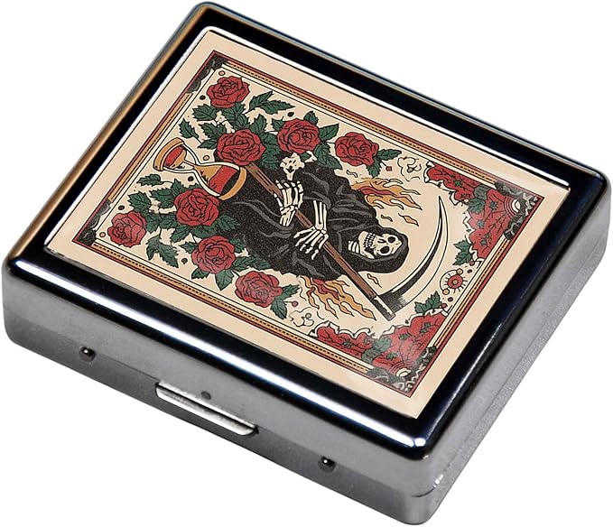 7 Days Chromed Shiny Silver Pill Organizer with Mirror Inside Has 8 Separate Compartments Rectangle,Versatile Storage for Medication - Ideal Travel Accessory (Sickle and Skull)