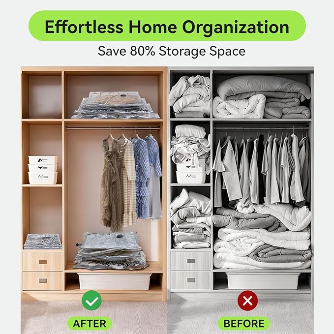 - USB and TYPE C Powered Vacuum Pump:-58KPa suction Save Up to 80% of Space, it compresses each bag in 10-15 seconds, completing a full set in under 3 minutes for efficient packing,allowing you to carry more things when traveling.USB charging via laptop or power bank ensures global compatibilit.