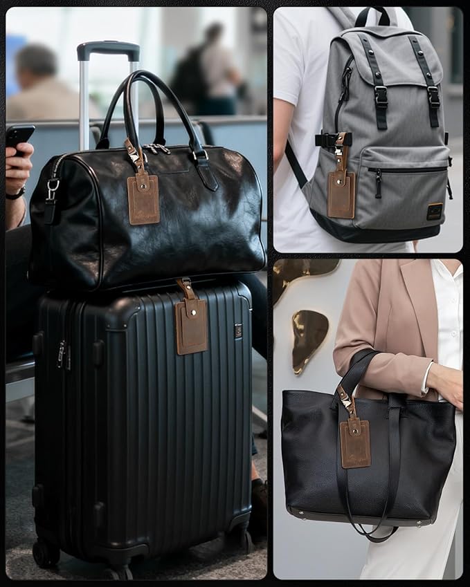 - Luxury & Durable: Crafted with premium genuine leather for vintage elegance, these premium luggage tags for suitcases are designed for frequent travelers who pursue enduring quality. Exquisite gift box packaging