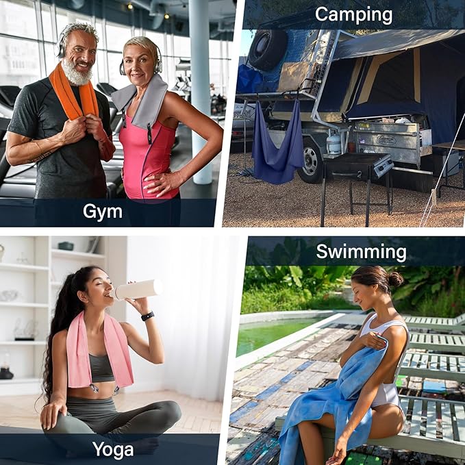 - Versatile: Available in multiple sizes, these workout towels are perfect for bath, sports, yoga, swimming, camping, hiking, or as a beach towel; Their durable, lightweight, and quick-drying design makes them ideal for any adventure or everyday use; Whether at the beach or home exercise, these versatile towels effortlessly meet all your needs