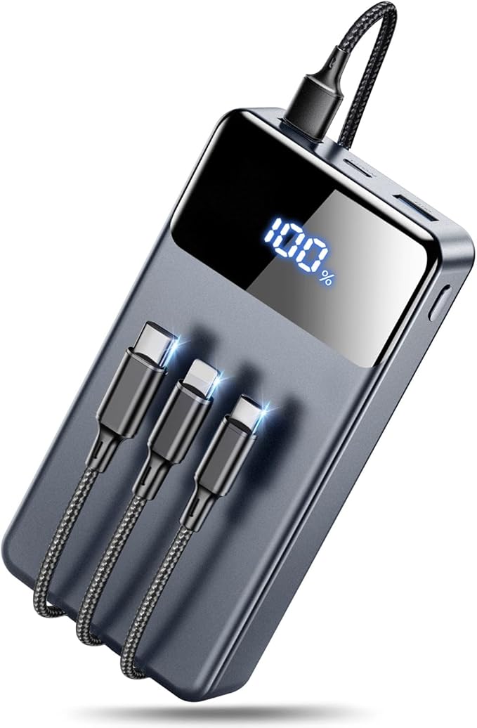 - Charge 5 Devices Simultaneously with Included Cable: Maximize convenience by charging up to 5 devices at once. This power bank comes with an industrial-grade, nylon-braided 3-in-1 cable (USB-C, Lightning, Micro-USB) for extreme durability and tangle-free use. It's perfect for phones, tablets, and more. Notably, it can also power energy-demanding gear like winter heated jackets and heated socks, keeping you warm in cold environments.