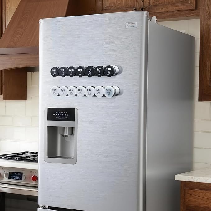 Weekly Stainless Steel Pill Organizer 7 Day, Magnetic Refrigerator Mountable Pill Box Case with Silicone-Sealed Lid for Travel(Morning & Evening)
