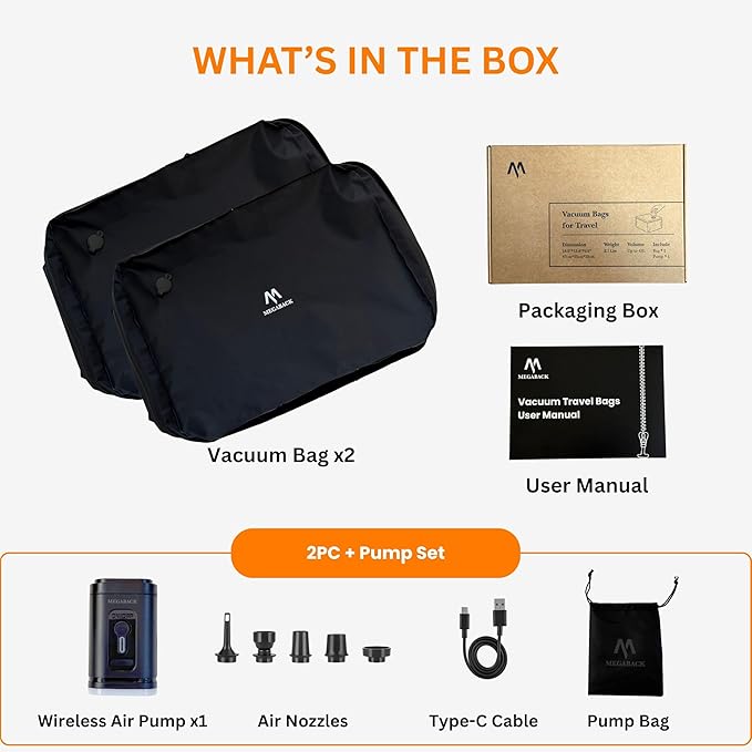 - 【Upgraded Vacuum Kit Included】The 4.5kPa wireless pump delivers fast, effortless compression-up to 34 uses per full charge. Ideal vacuum seal bags for bedding and convenient travel vacuum bags for luggage