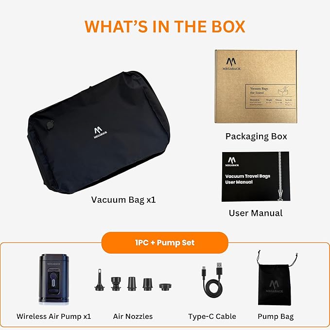 - 【Upgraded Vacuum Kit Included】The 4.5kPa wireless pump delivers fast, effortless compression-up to 34 uses per full charge. Ideal vacuum seal bags for bedding and convenient travel vacuum bags for luggage