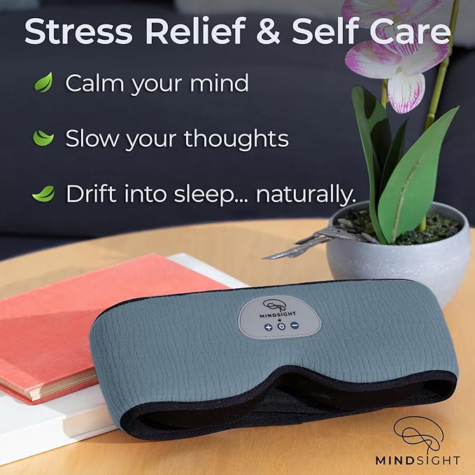 Mindsight DriftBand Sleep Mask with Bluetooth Headphones | Blackout Eye Mask with Memory Foam | Breathable Plush Fabric | Ultra-Thin Adjustable Speakers | Built for Sleep & Travel | Spot Clean Only