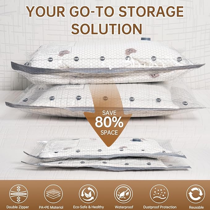 - High-Quality & Space-Saving: These storage bags feature a durable PE+PA blend with 7-layer construction and a dual-zipper design that provides an airtight, waterproof, and dustproof seal—not only ensuring lasting protection for your belongings but also reducing their volume by up to 80% to maximize space.