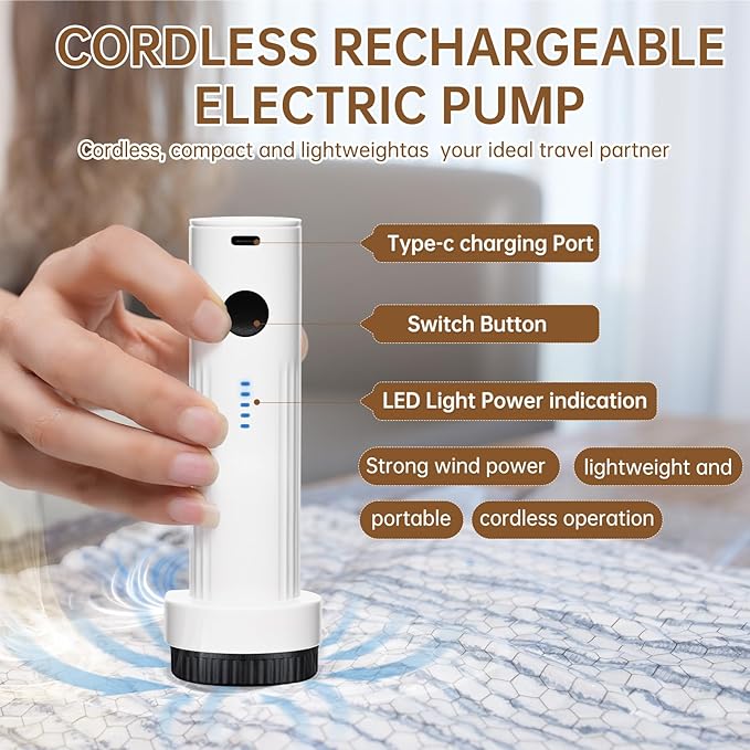 - Rechargeable, Cordless & Ultra-Portable Pump: Weighing only 4.4 oz, this compact pump is made for travel. Its 1500mAh battery compresses up to 90 bags per charge and can be powered via USB from any laptop or power bank, offering a space-saving solution worldwide.