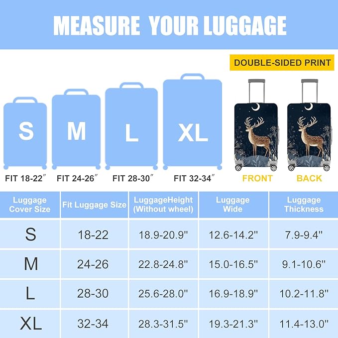 - Elegant Deer Design – Features a majestic deer standing under the moon in a starry night forest, adding a stylish and artistic touch to your suitcase.