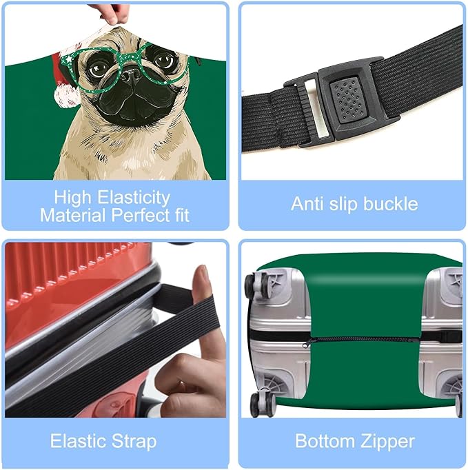 Christmas Pug Luggage Cover, Washable Cute Dog Suitcase Cover, Animal Lover Suitcase Protector Anti-scratch Bag cover, M