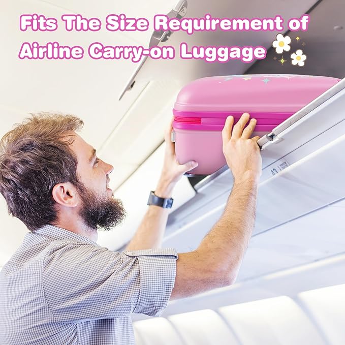 - đ€©ă2 PCS Carry On Luggage Setă The kid luggage set includes a 16ââ hardshell suitcase and a 12ââ backpack, providing a large capacity to keep items well organized. The suitcase features inside cross straps and a zippered storage pocket for classifying items, and the backpack also comes with 2 storage compartments. Moreover, the luggage set is airline-approved to carry on.