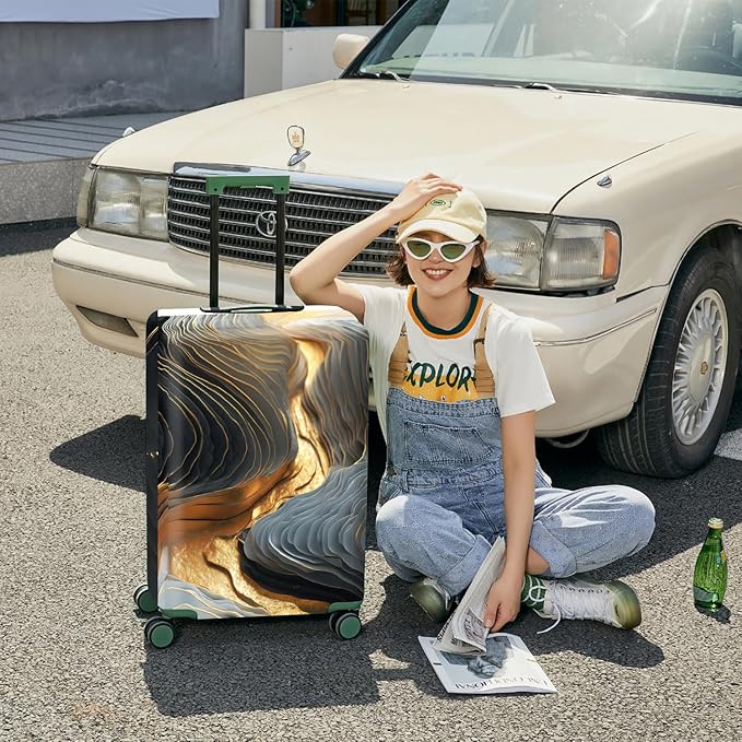 FOREVER QUEEN Gradient Black Gray Gold Marble Luggage Cover Suitcase Protector Suitcase Cover Anti-Scratch,Stretchable Bag Cover Washable Durable Polyester