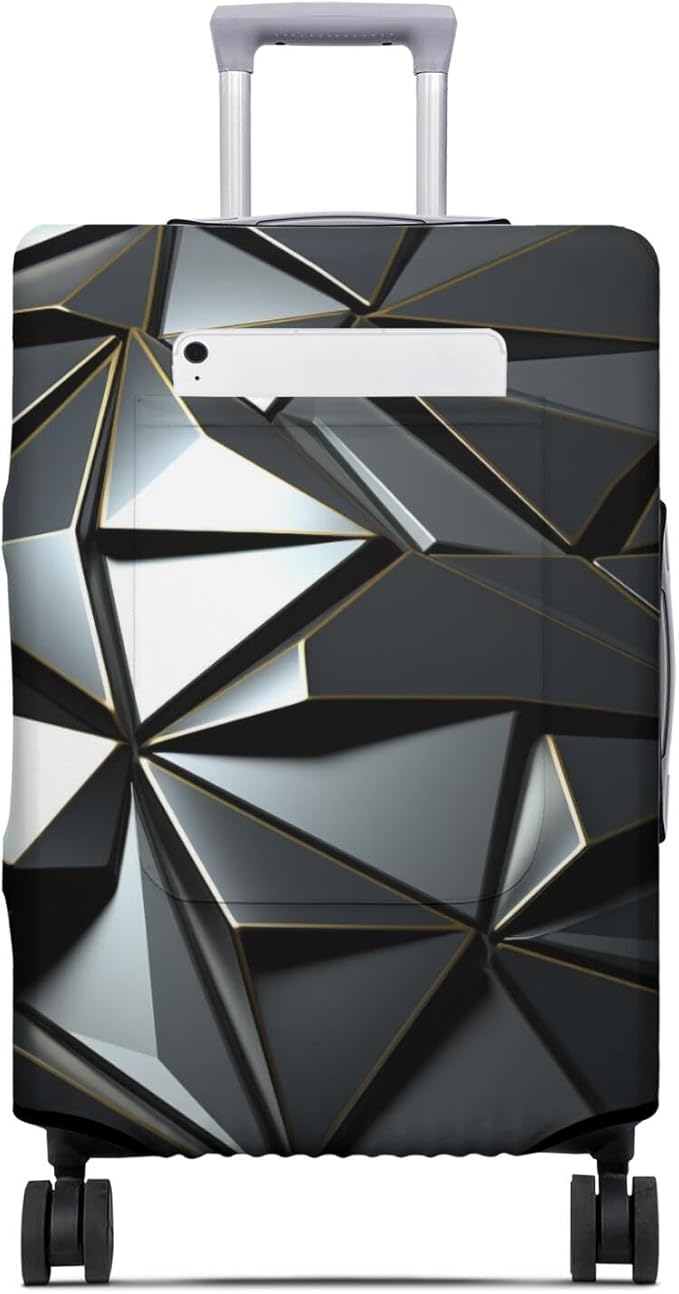 Black Geometry Travel Luggage Cover, Travel-Themed Suitcase Protector Stretchable, Washable Travel Suitcase Cover (M for 22-24 Inch Luggage)
