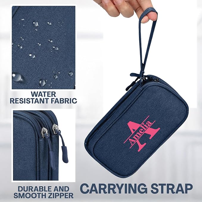 - Customizable Navy Travel Case: Personalize this navy electronics organizer with your name or initials for a unique and easy-to-identify pouch. Perfect for chargers, cords, USB drives, and gadgets when traveling, at the office, or for daily use.