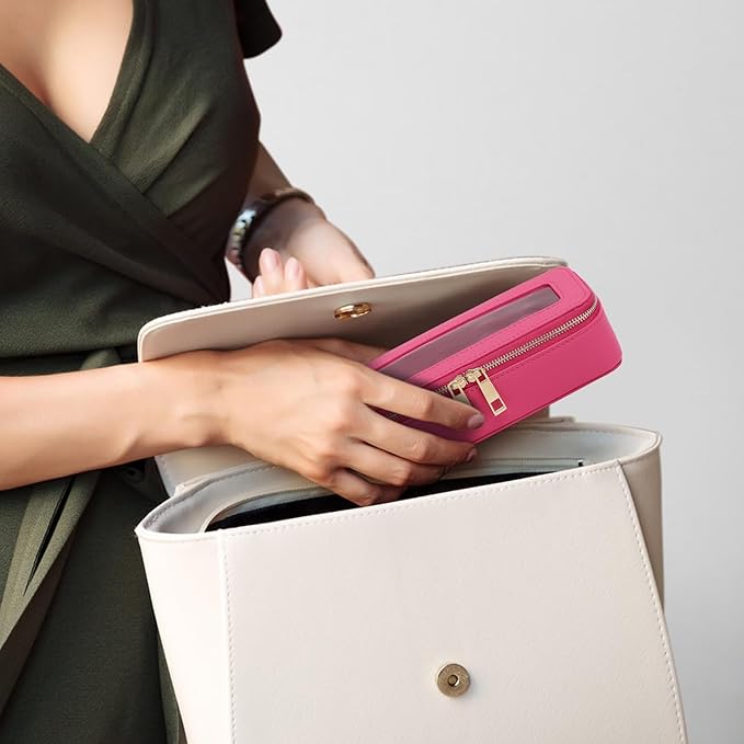 - [Premium Quality Material]: Made from durable and soft faux leather material, our travel makeup bag offers excellent longevity and protection for your items. The metal zipper guarantees secure closure, ensuring your belongings are safe. Additionally, it is easy to clean, maintaining its pristine appearance.