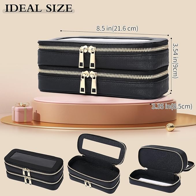 - [Double Layer Design] : This slim makeup bag features a double-layer design, making it easier to organize cosmetics and brushes.