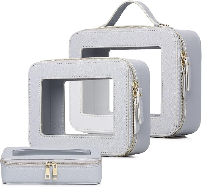 - [Clear makeup bag set ]: These clear makeup bags features a medium size (8.07" * 5.9" * 2.75") and large size (9.44" * 7.48" * 3.34"), providing ample space for all your cosmetics and toiletry items. It is ideal for travel, fitting perfectly in your carry-on or suitcase.