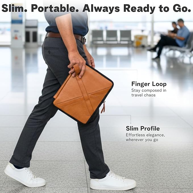 - GIFT-READY & VERSATILE – A polished leather tech organizer for travelers, students, and creatives. Ideal as a leather tablet case, electronics accessories organizer bag, or everyday carry hub that slides neatly into any backpack or tote.