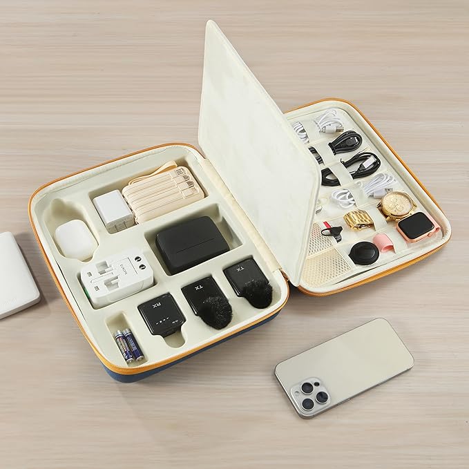 Electronics Organizer Case, Daily Tech Accessories Storage Bag for Charger, Cables, Power Bank, Lapel Mic,Watch, Passport, Travel Electronic Organizer Case for Travel Live Streaming Business Trip