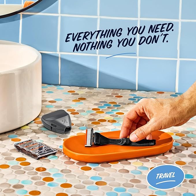Dollar Shave Club | Travel Shave Set | 4 Extra Close Refill Cartridges, 1 Handle (Black), 1 Razor Cover