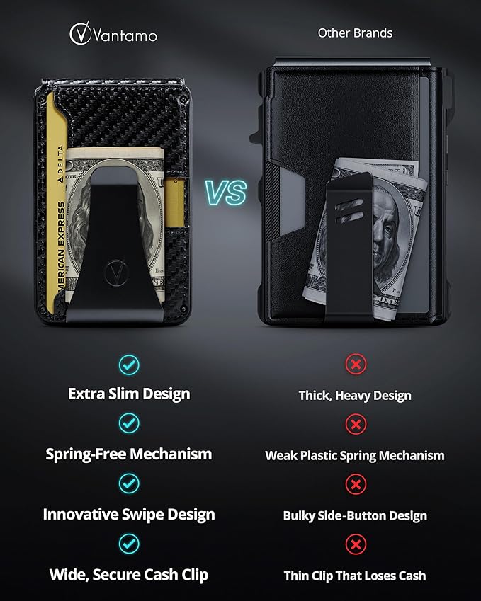 - Fast card access with one simple swipe with Vantamo wallets! Our easy-to-use swipe and go mechanism offers a smooth cards glide without any effort. Ideal as money clip for men, this handy card holder wallet is as sleek as it is functional. A perfect blend of form and function!