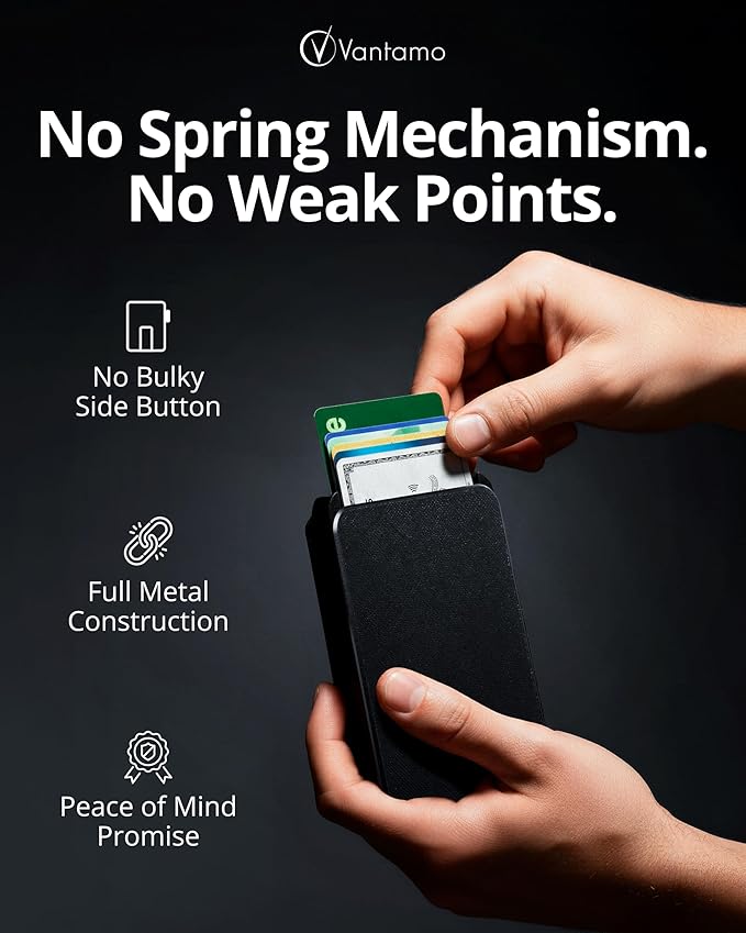 - No-spring mechanism, no durability issues! Our unique no-spring system means smoother operation and less wear. This minimalist wallets is built to outlast trends, giving you a really lasting men slim wallet. No matter what outfit was chosen, our cool wallet will fit perfectly into any pocket without adding bulk.